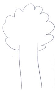 Later on, when I went to school, I saw how the other children drew trees: a simple trunk drawn with two lines and a puffy cloud to represent the leaves—something that could be drawn in a few seconds. They might have looked something like this: